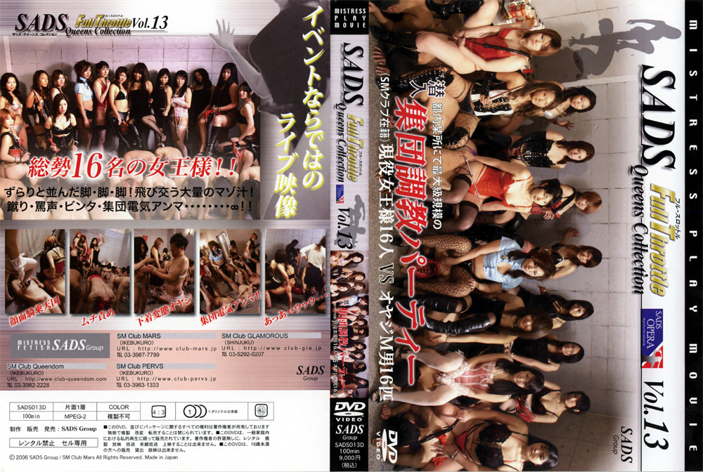 アフィリエイト広告を利用しています 集団調教パーティー SADS 2012.04.05 都内某所で行われたSADS GROUP主催のリアル調教イベントが遂に映像化!総勢16名の女王様が勢揃い!!いたるところから聞こえてくるうめき声や、女性が高らかに笑う声…集団電気アンマ、顔面騎乗、聖水シーン、強制手コキ等見所満載! シリーズFull Throttle カテゴリ女王様 レーベルSADS 品番sads-0012 集団調教パーティー サンプル画像 DUGAで見る